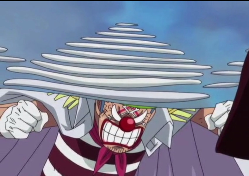 能力者是小丑巴基,第一次出场,就惊艳的偷袭了索隆,用香克斯的话来说,就是怎么也砍不死,顶上战争的时候,顶下了鹰眼的连续斩击,海贼王里鹰眼遇到的对手中,除了他家的菜板,应该就是小丑巴基了吧,被削成了土豆片,还能把鹰眼骂一顿,也不知道鹰眼当时怎么想的,会不会很无语。