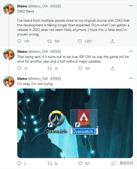 曾多次爆料《守望先锋》相关内容消息的推主@Metro_OW近日发推爆料称《守望先锋2》的开发花费的时间比预期的要长,可能无法在2022年发售了。