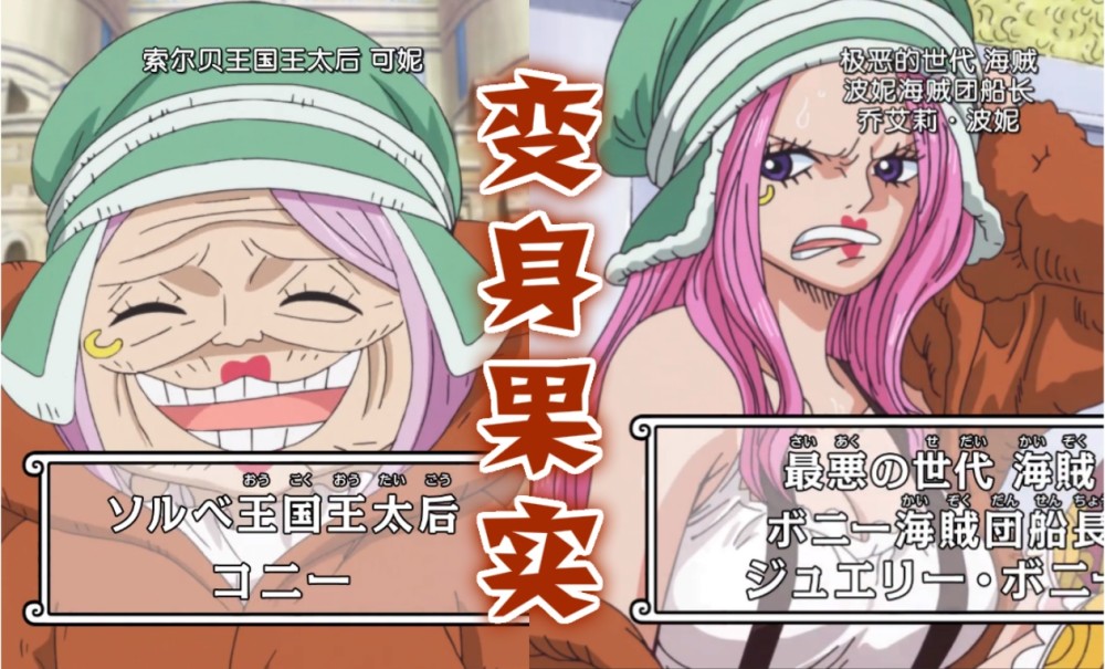 然后我们再来看看其他两颗恶魔果实,首先是超新星之一的“乔艾莉·波妮”,她的身份存在诸多疑点。果实能力方面虽然说目前名称不详,但确定能够改变“年龄”,而且她在改变年龄这一点上颇为“强大”。
