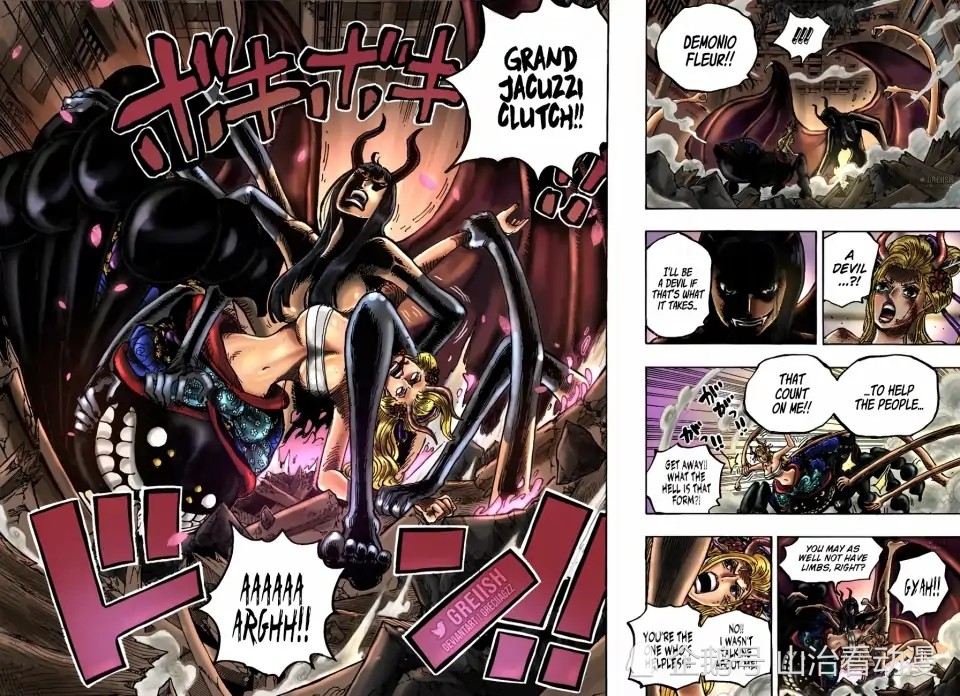 海贼王最新一话情报中,鬼岛即将飞到花之都上空,花之都正在举行火之祭典,巨大的鬼岛来袭,花之都可能会被夷为平地。宴会厅的战斗异常激烈,猫蝮蛇偷袭大妈长子,犬岚对战旱灾杰克,基拉对战霍金斯,大妈与基德和罗等人激战。路飞吃饱喝足后,他很快就要去挑战凯多了,对此大家有什么看法?欢迎大家在下方留言评论,图片来自网络,侵删致歉!