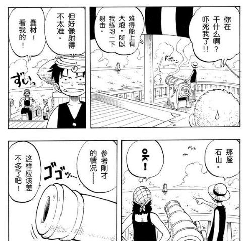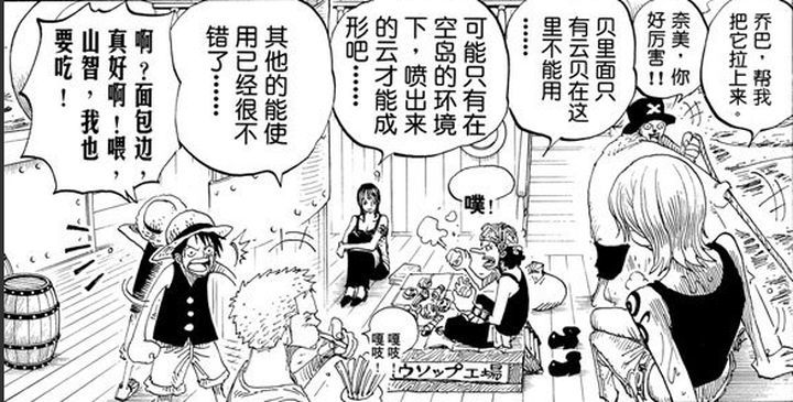这里大家能够看见乌索普在船上有一个“小工场”,经常捣鼓些发明创造缝缝补补什么的。估计船上钉个钉子之类的活都是心灵手巧的乌索普来干得。只不过漫画不可能都描写出来罢啦。