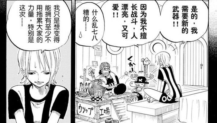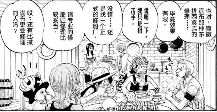 虽然乔巴天真可爱有的时候很没有常识,看到很厉害的东西就觉得是最厉害的,但这句“唉?还有比乌索普更会修理的人么?”还是相当能体现乌索普的修理水平。