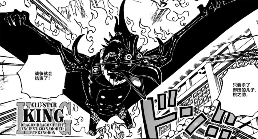 king的真面目即将曝光,他是曾经生活在红土大陆的种族的一员,目前只剩下他一个独苗。看来King的身份公开以后,会曝出一个惊人的历史。另外,King会放出火焰,而索隆能斩火,对king来说是一个不小的克制。