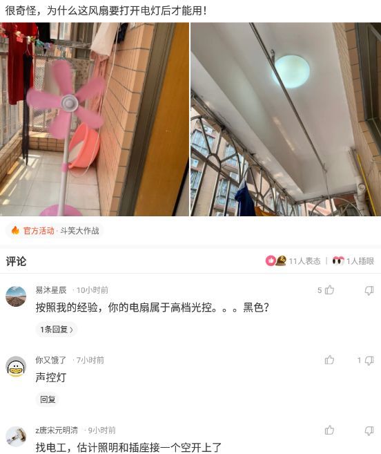 【沙雕问题10】:很奇怪,为什么这风扇要打开电灯后才能用!