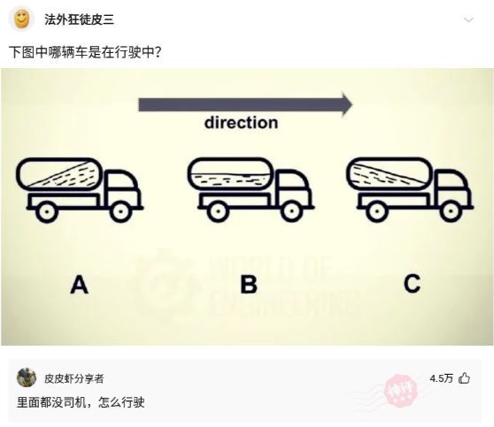 【沙雕问题8】:下面图中那辆车在行驶中?