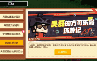 8月12日大版本更新之后,吴磊也会正式的加入到游戏当中。完成任务,每天和吴磊一起环游方可乐岛,就能获得丰厚的奖励。还能前往吴磊的探险营地,和他一起拍照打卡!