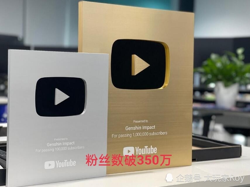 在这款游戏上线的300多天里原神的youtube官方频道就突破了350万粉丝数,而原神也收到了油管粉丝数破百万才能获得的金创作者奖牌。这也意味着原神在海外市场取得了不小的成功