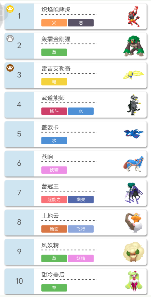 那么,系列10已开启了十余日,登顶VGC前十的宝可梦是哪些呢?