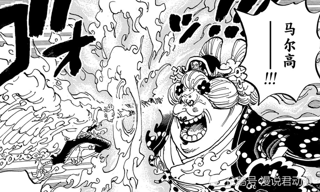 在漫画981话,BIG MOM海贼团再登瀑布,结果被马尔科一脚撂下。这一次,也有一人独自留在瀑布之上,那就是长子佩罗斯佩罗。在漫画984话,马尔科到了鬼之岛,但发现海面上有东西,又去探查。
