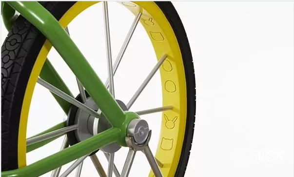 正如图片上所看到那样,这是一辆非常梦幻、童趣的自行车,造型前卫,设计感强,仔细对比可以发现,无论是外观,还是“黄绿”配色,各个细节都尽力复刻原型,制作十分精良,用心。