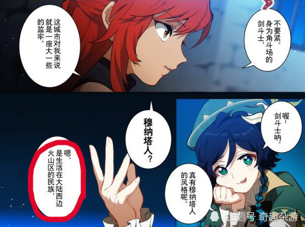 既然已经知道了5个国家的位置。那么我们来推断一下剩下的吧,先是穆纳塔,它的位置资料出现在《原神》的漫画中,漫画介绍温妮莎的时候,提到过穆纳塔位于大陆的西边。既然穆纳塔在西边,那么枫丹要挨着须弥,就只能在南方了。