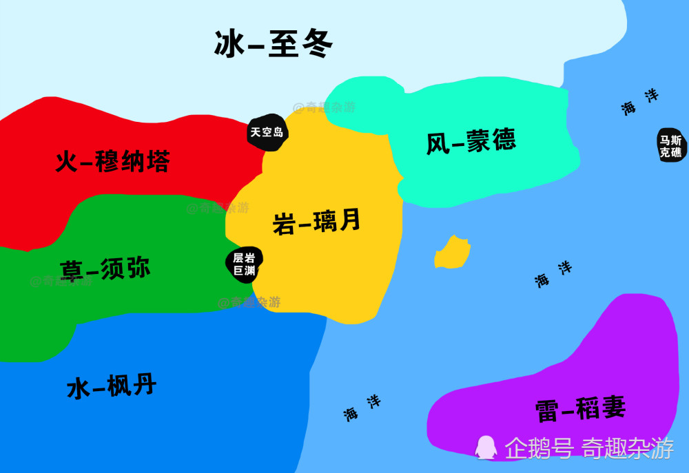 你是否幻想过?如果《原神》将七国都出完,提瓦特大陆将会是怎样一番风景呢?轻风吹过风起地,从北到南会经过多少国家?神秘地天空岛又在哪里?关于地图,《原神》有着太多秘密了。这里我收集了一下游戏中的资料,推测和绘制了一下,七国的完整地图。