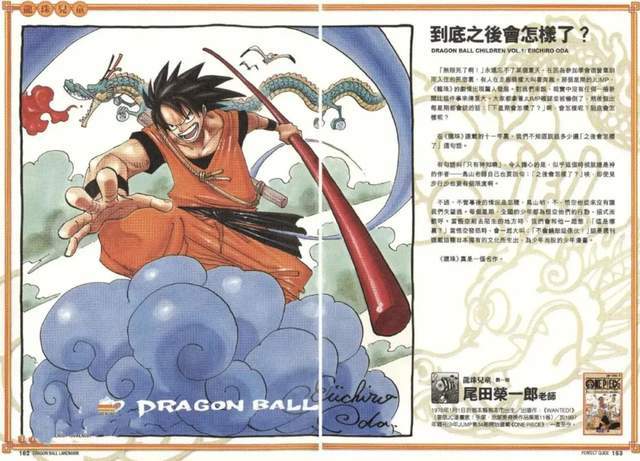 成名后,尾田也经常画一些与《龙珠》联动的漫画,可见鸟山明对尾田的影响力极其深远---