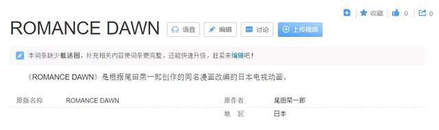 虽然第一话的标题就是“ROMANCE DAWN”,主角的名字也同样叫“路飞”,但性格判若两人,故事的剧情也有很大的差异,因此前者也只能看作是后者的原型,也算是一个传承的关系---