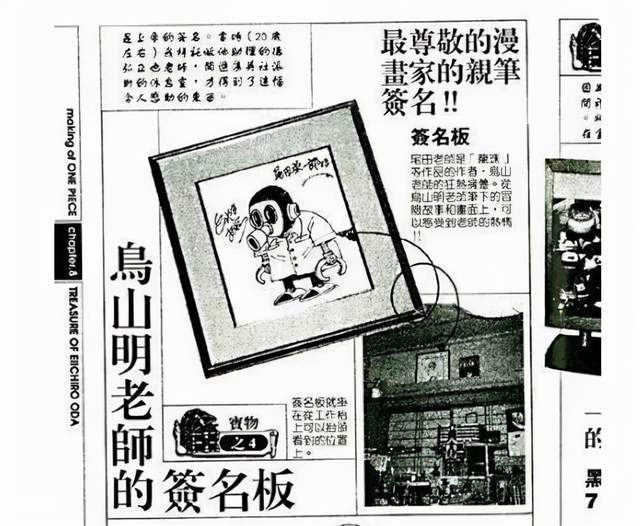 期间,尾田还把鸟山明的签名照挂在墙上,以激励自己---