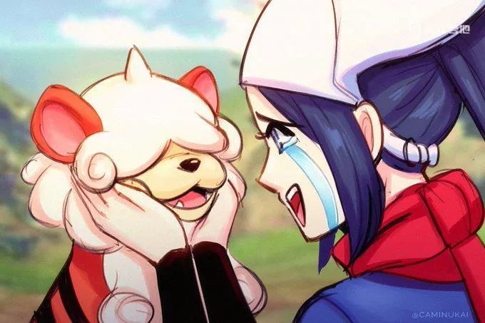 当然,除了对影片中「暴走宝可梦」的关注,玩家们的视线自然也离不开刚刚公布的新形态宝可梦,比如目前看来热度最高的幽尾玄鱼、卡蒂狗(洗翠的样子)以及勇士雄鹰(洗翠的样子)和诡角鹿,在它们出场之后,粉丝们便纷纷埋头开始了二次创作: