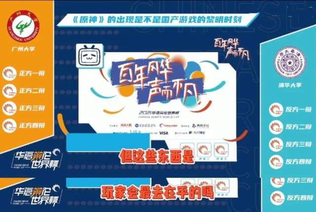 清华突然顺着正方观点来向对方出招,广州大学的选手也一时间之内被他们给牵着鼻子走了,使得话题变成了“什么是国产游戏的黎明时刻”,或是“原神配不配得上国产游戏的黎明时刻”。