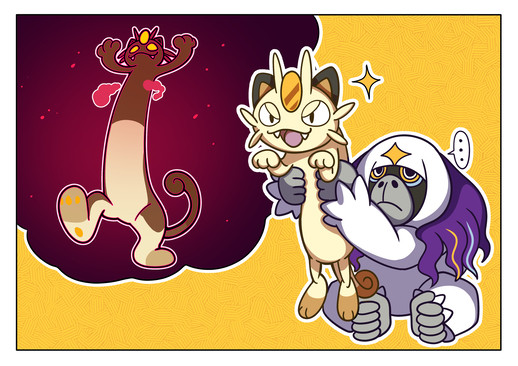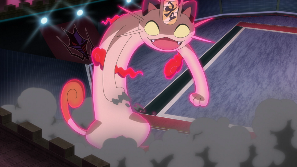 结合第八世代的取景地来看,喵喵的超极巨化的样子可能也参考了巨蟒剧团之飞翔的马戏团喜剧短片中大闹伦敦的巨型暹罗猫。