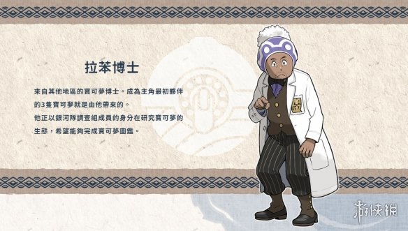 来自其他地区的宝可梦博士,成为主角最初伙伴的3只宝可梦就是由他带来的。此外拉苯博士正以银河队调查组成员的身份在研究宝可梦的生态,希望能够完成宝可梦图鉴。