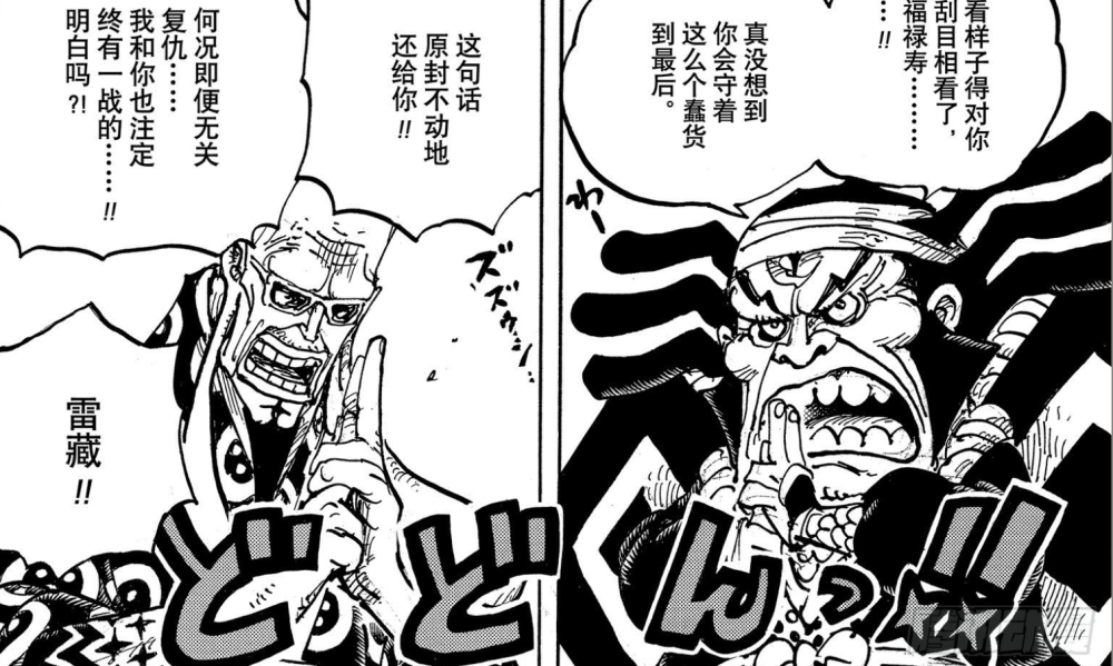 随后的第三幕,便是忍者间的终极对决,雷藏与福禄寿之间的战争,此战结束后,也就意味着凯多这边基本没剩下什么了……