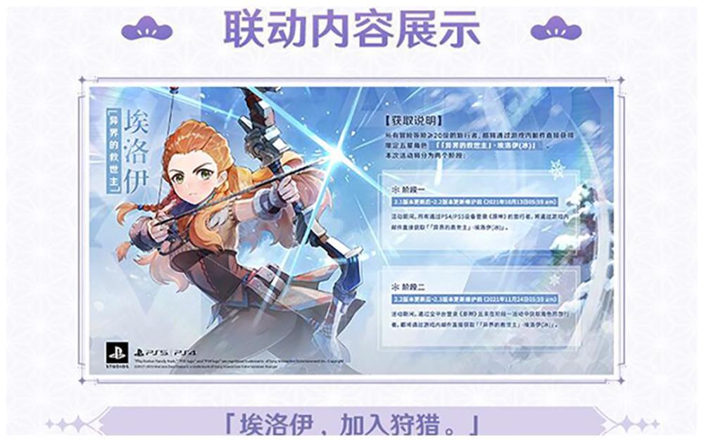 【埃洛伊】是原神与索尼联动的角色,出自游戏【地平线】,届时玩家只需要登陆PS4/PS5即可免费获取,而没有登录的旅行者也不要着急,在2.2版本中也会为大家奉上。