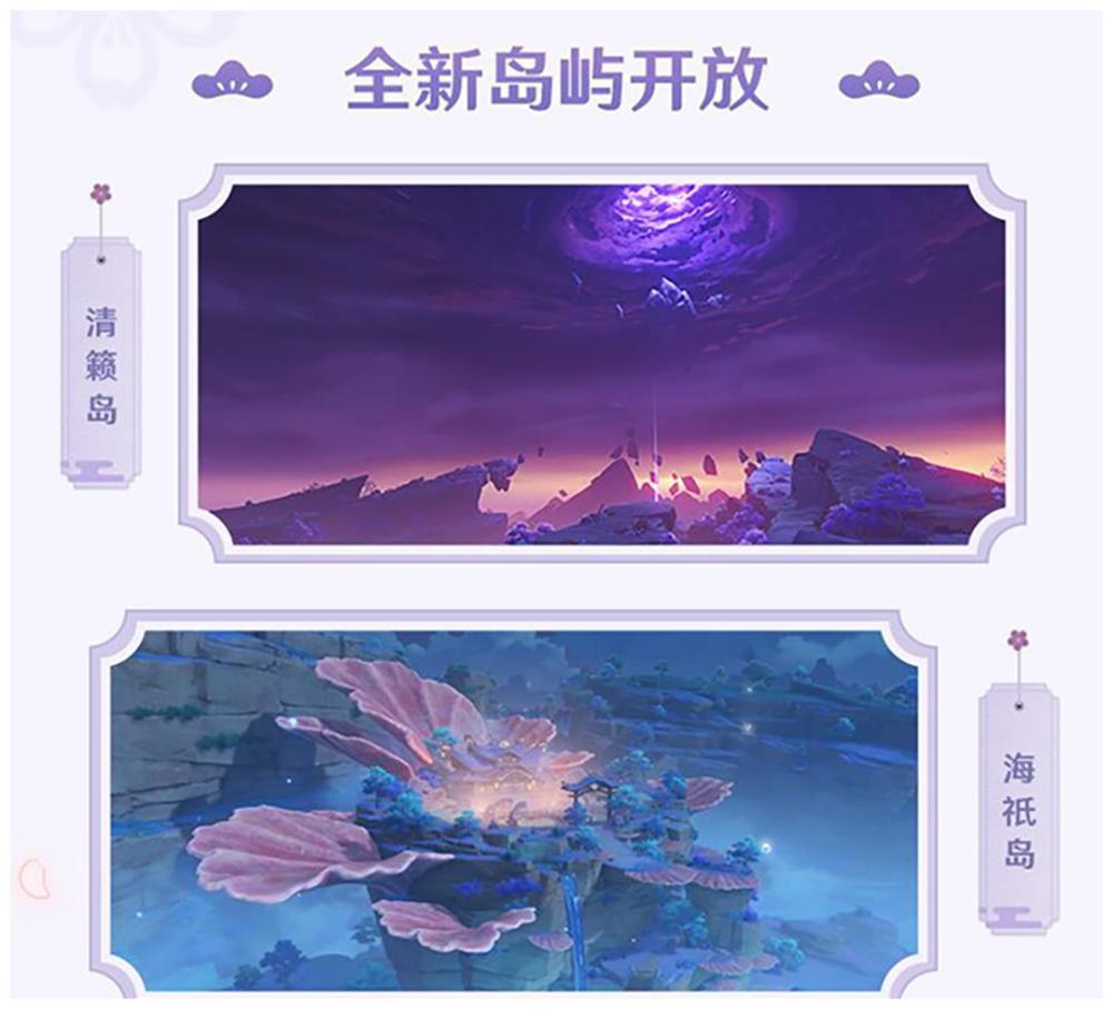 2.1版本中将会开放两个全新的稻妻地图:【清籁岛】与【海祇岛】,它们的风景都是独居一格,让人惊叹不已。