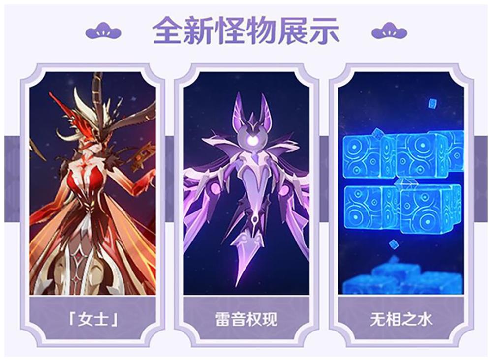 2.1版本中将会出现周常BOSS【女士】以及【雷音权现】【无相之水】,继【公子】与【无相系列】来袭。