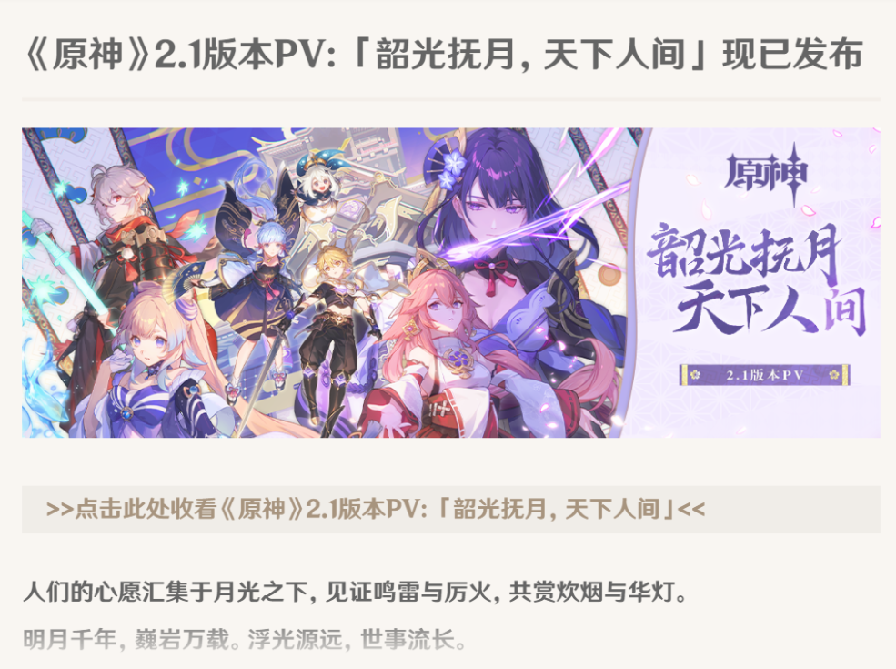2.1版本PV《韶光抚月,天下人间》