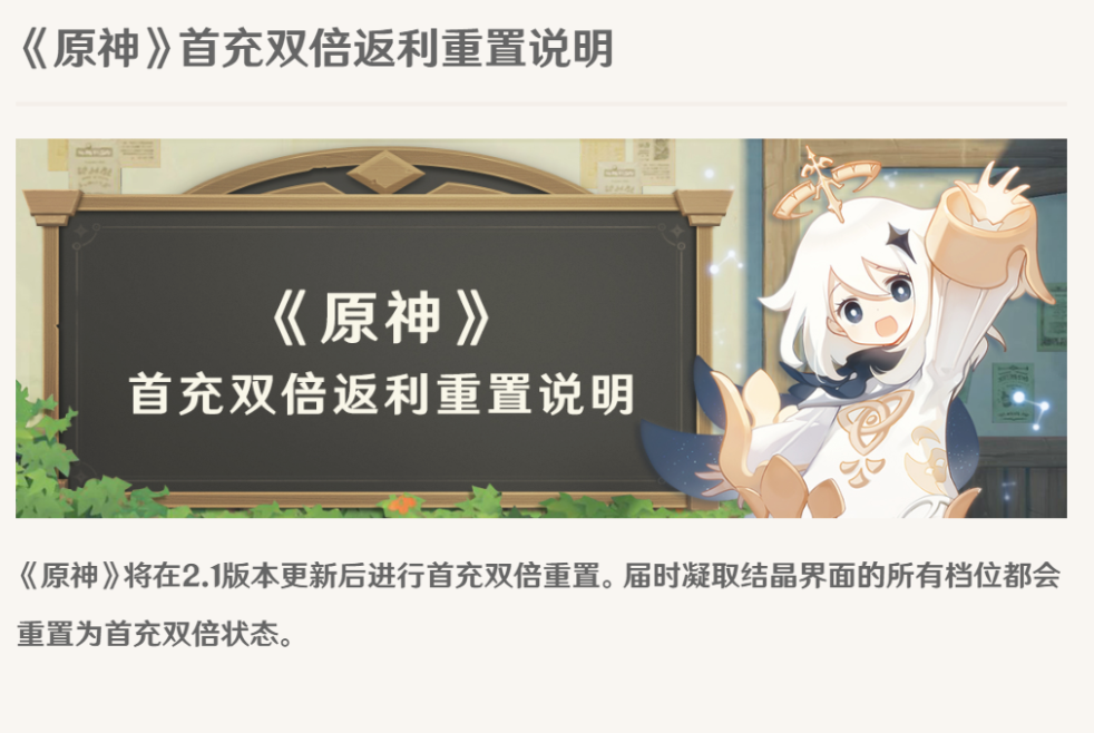 2.1版本首充双倍返利重置说明