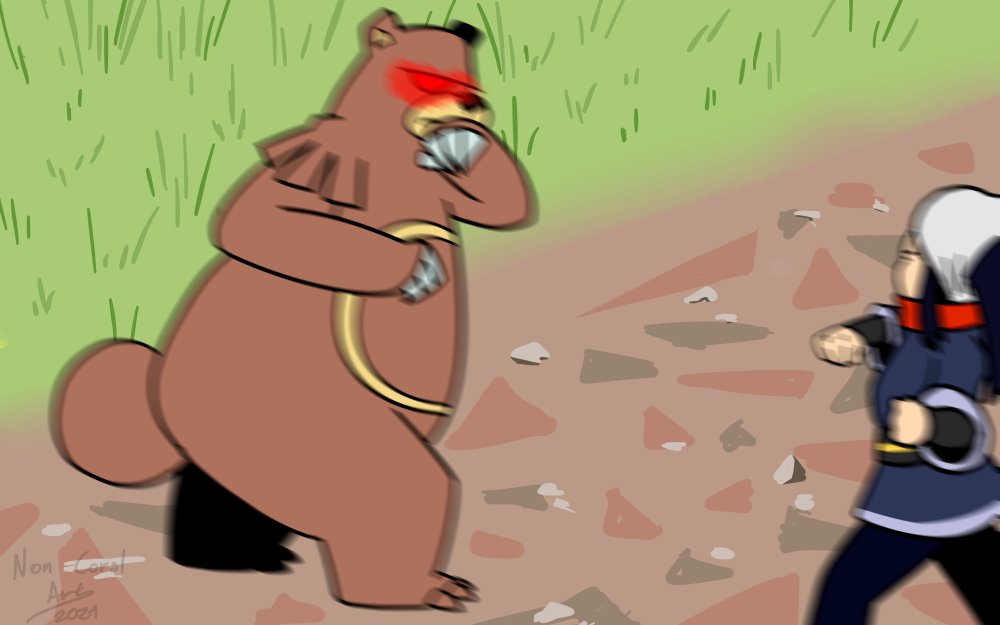 所以网友NonCoral_Art就认为主角怎么可能会被野生宝可梦追着跑呢,区区一只圈圈熊根本不带怕的好嘛。