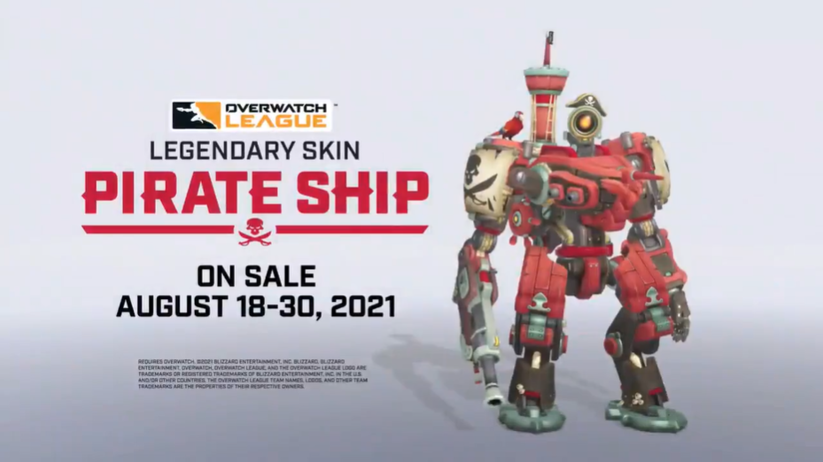 《守望先锋》联赛官方微博公开了全新八月“倒计时杯”锦标赛传奇皮肤“海盗战船”,并发布了展示视频。该皮肤上架时间为8月19日至30日(北京时间),玩家在此期间可以花费200联赛代币购买此皮肤。