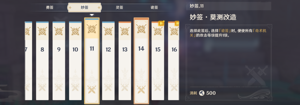 或许是因为米哈游的一时疏忽,活动当中存在着两个强悍之极的妙签——妙签11和17。玩家借助这两个签,可以无限提升炮塔的等级。