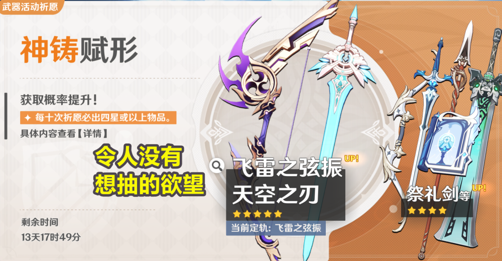 但个人以为,《原神》祈愿概率算不上太低,只是祈愿池当中总会夹杂一些奇奇怪怪的、强度不那么高的角色和武器。尤其是武器池,每次都是一个好武器和一个“伪5星”强度的武器同时UP,再加上UP外的概率,抽到想要的武器的概率比预期低太多了。