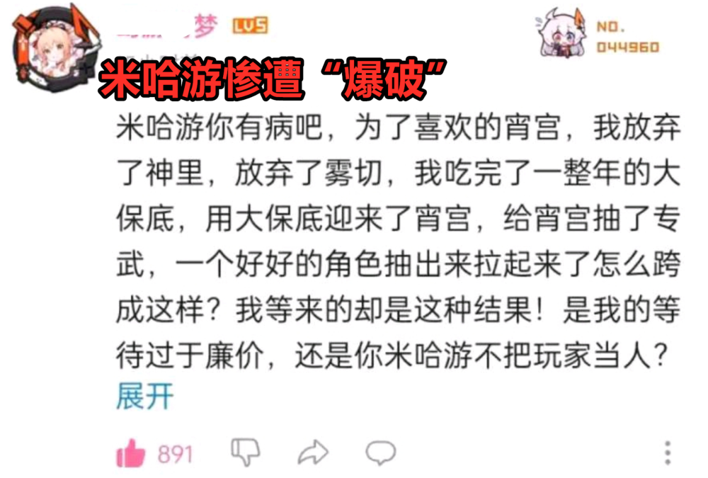 但令人始料未及的是,仅仅因为霄宫强度不高,米哈游竟然遭到了大量玩家的“爆破”。许多《原神》玩家认为,米哈游对角色的平衡做得不够好: