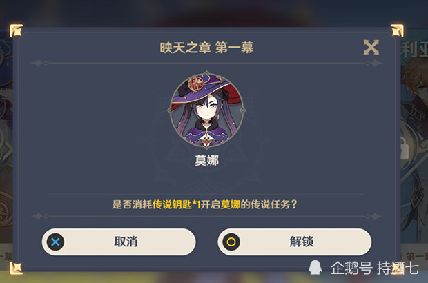 解锁莫娜的传说任务。第一幕是映天之章(目前,莫娜传说任务只开放了第一幕映天之章。估计以后的任务还没策划完毕。)