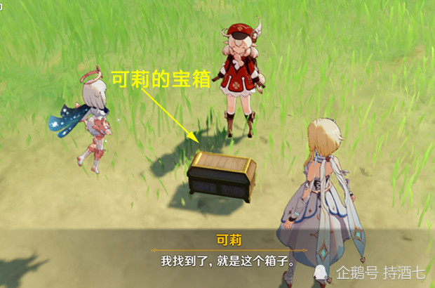 可莉等人费了好大劲儿,打败草史莱姆,拿回宝箱。