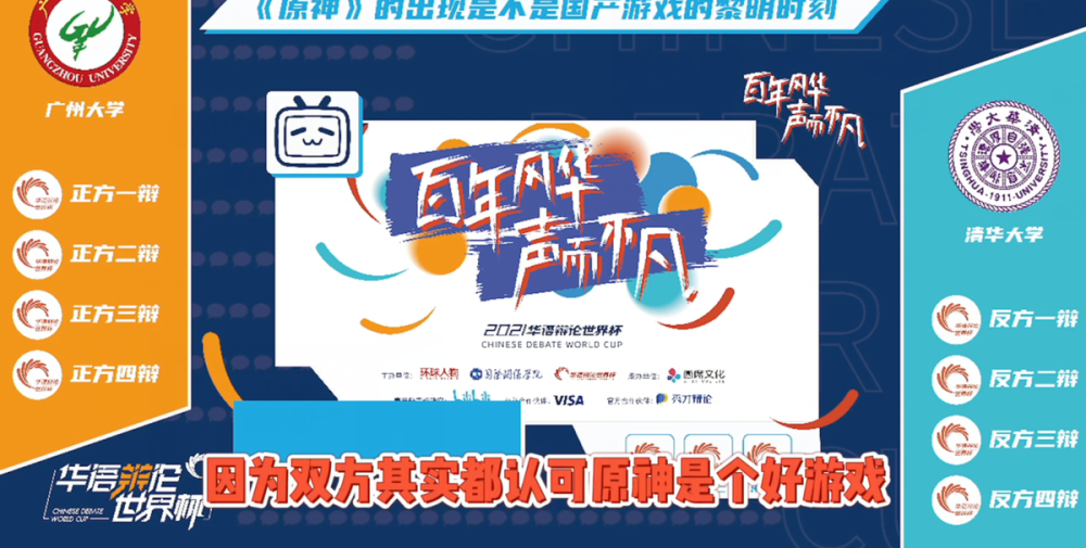 作为首轮比赛的正辩方,广州大学率先摆出了《原神》在质量和内容上的优越性,进而引申到此模式所带来的新趋势以及游戏市场在《原神》出现后所发生的波动;而清华大学作为反方则开始主攻“黎明”二字,认为在《原神》出现之前,国产游戏就已经有不少佳作出现,称其为国产游戏的黎明实属夸张,若改成光辉时刻还算正常。