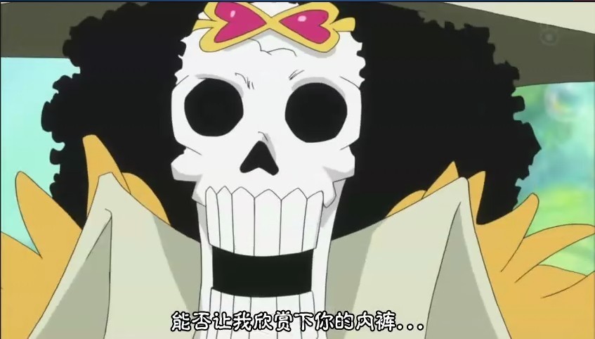 未来海贼王的船员,路飞船上的音乐家,一曲宾克斯的美酒,惊艳了海贼世界,当然不是他创作的,可是他演奏的真的很好。他最厉害的还是对于胖次的执着,但凡是女性,他都要问一下,包括四皇夏洛特玲玲,感觉他可能是海贼王里最勇敢的好色之徒了吧,勇敢骨骨,不怕四皇。