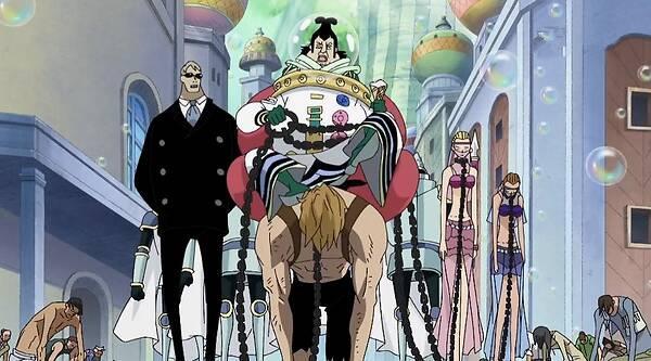香波地岛篇中,一个天龙人曾当场强行宣布让一位护士成为他的妻子,他的手下随即用锁链套在该名护士身上。这时,一个管家模样的人说,他已经拥有五位妻子。