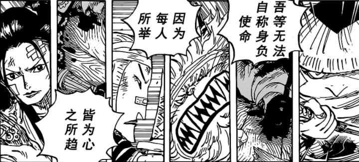 前面虽然宝岚经常吐槽战力和剧情上的不合理,但在这一话出来之后,宝岚觉得战力啥的不重要,我们想象看到的不是尾田要呈现的,这是尾田荣一郎的海贼王,我们只是观众,我们想啥不重要,尾田画啥才重要,说回剧情本身,从索隆、山治对战烬、奎因的对位来看,尾田后续剧情估计是真想让路飞单挑了,而且是要走桃太郎加三妖怪打boss的路线。