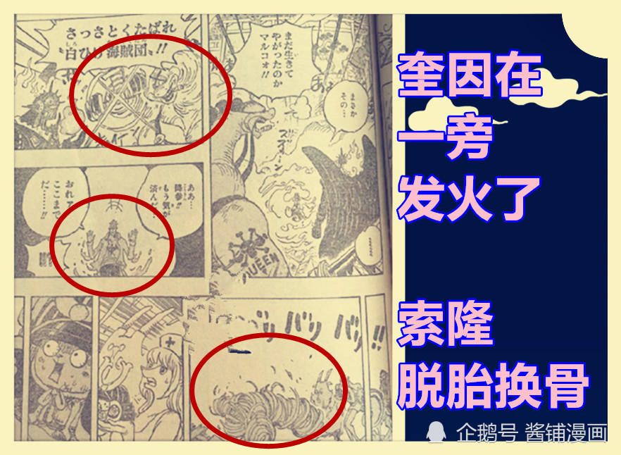 可怜的King与奎因都同时受伤了,索隆与奎因的表演时刻到来。