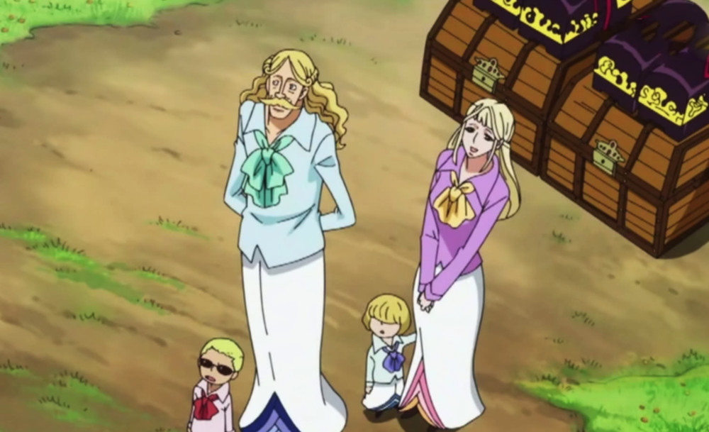 但是他不知道的是天龙人已经拒绝了他们,认为他们是不能够重新回来的,就在这个时候他遇见了托雷波尔,托雷波尔在知道了明哥拥有霸王色霸气之后,开始了新的筹谋,给老人明哥一支手枪和一个恶魔果实能力,从此唐吉坷德家族诞生。