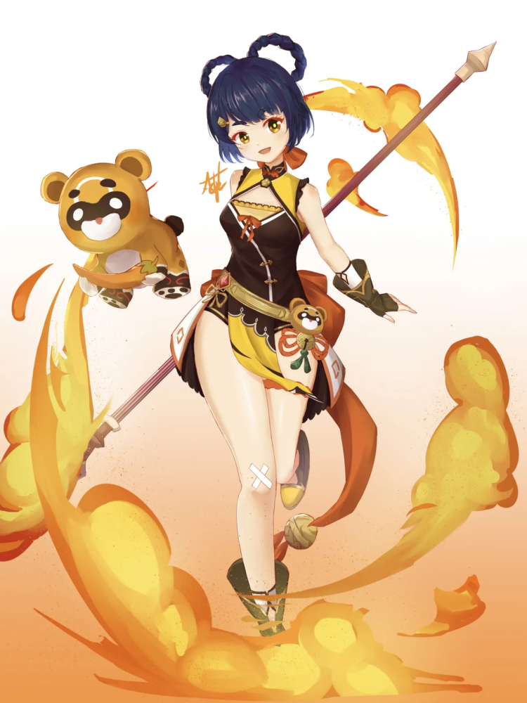 不知道大家还记不记得这位角色,这位可是行秋都无法辅助的火系大C(和可莉一样,行秋的频率跟不上)。烟绯通常在纯火队,依靠风系的减抗来站场打出高额的伤害。
