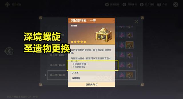 最后是深境螺旋圣遗物的更换。