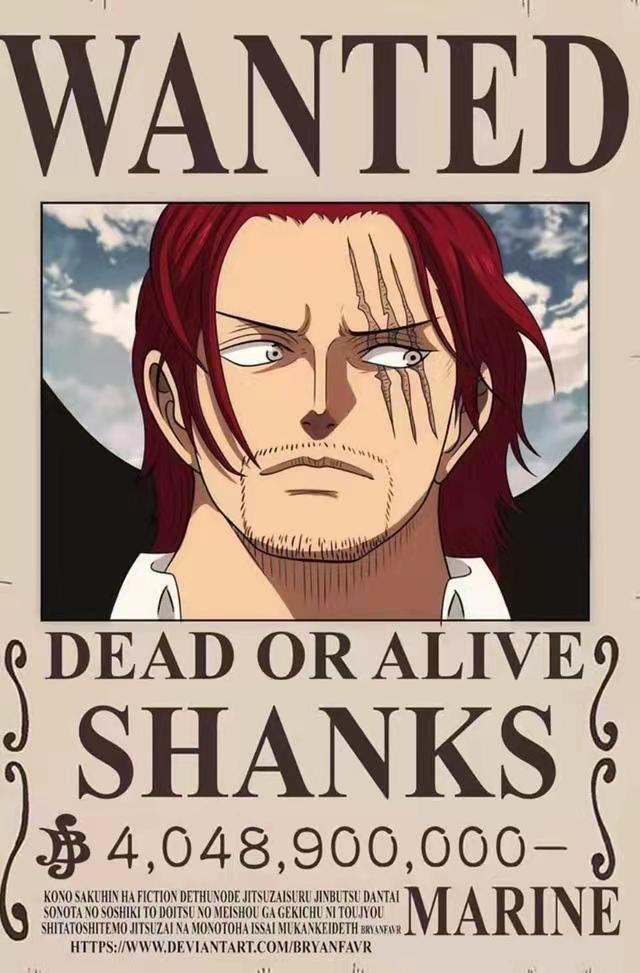 香克斯悬赏为40亿4890万贝里 。然而与这威名相反,世界上再没有比他更加能体现“自由”的海贼了,如果“海贼王”的定义是“这片海上最自由的人”,那么可以说,香克斯是与那个宝座最接近的存在了。