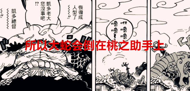 海贼王1048话情报更新了,从这一话的内容可以看出,尾田开始对九侠的人下手了,九侠一开始被描述得很神秘,每个人身上甚至都有不同的经历和不可告人的秘密,但结果却被凯多一棒子给按倒在地,这也是令人大跌眼镜,但很快,尾田又把他们捞回来了,传次郎就是很好的代表,他开始发力,一登场就干掉了大蛇,体现了传次郎该有的价值,当然,大蛇因为是幻兽种的缘故,所以他不会那么轻易死掉的,那么这时候尾田埋藏已久的宝刀伏笔,终于又被挖出来了,下面一起来分析下吧。