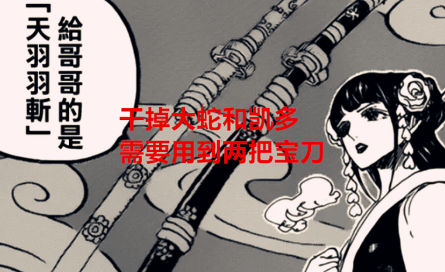 而现在这两把刀分别落入在索隆和桃之助身上,这恰恰就是想要告诉我们,桃之助会用天羽羽斩去干掉大蛇,这刀能让大蛇失去复活的能力,海楼石的威力是可以让能力者不再重生并且会压制能力者,所以为啥这两把刀一直被日和保存着,就是因为这刀能够帮助他们推翻大蛇,重新建立新的国度。