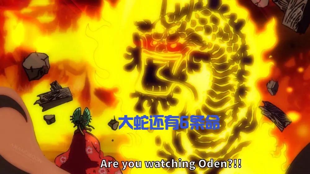 回顾之前的剧情,我们可以发现黑炭大蛇最早是被凯多拿着烬的武器将其斩首,属于第一次领盒饭,在985话发生的;