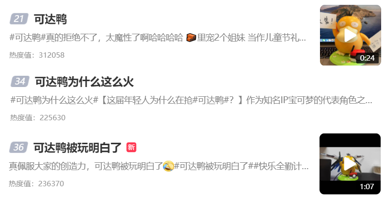 作为全网“C位”,可达鸭的排面也是不一般,这两天一直在热搜榜上,相关话题就有好几条。