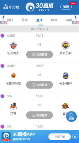 30TV体育JRS直播是一个非常实用的软件,该软件可以享受全球比赛的直播,用户不需要钱就可以观看任何比赛,我们还可以来实时预测和分析数据,这个软件还支持多线广播和国际比赛的广播,这个软件是很容易使用的。